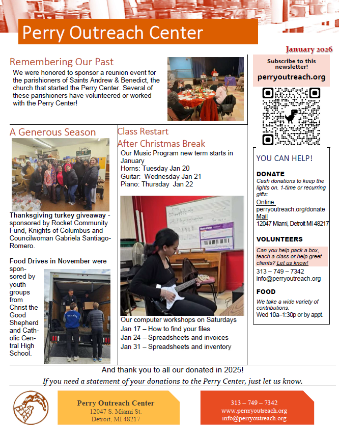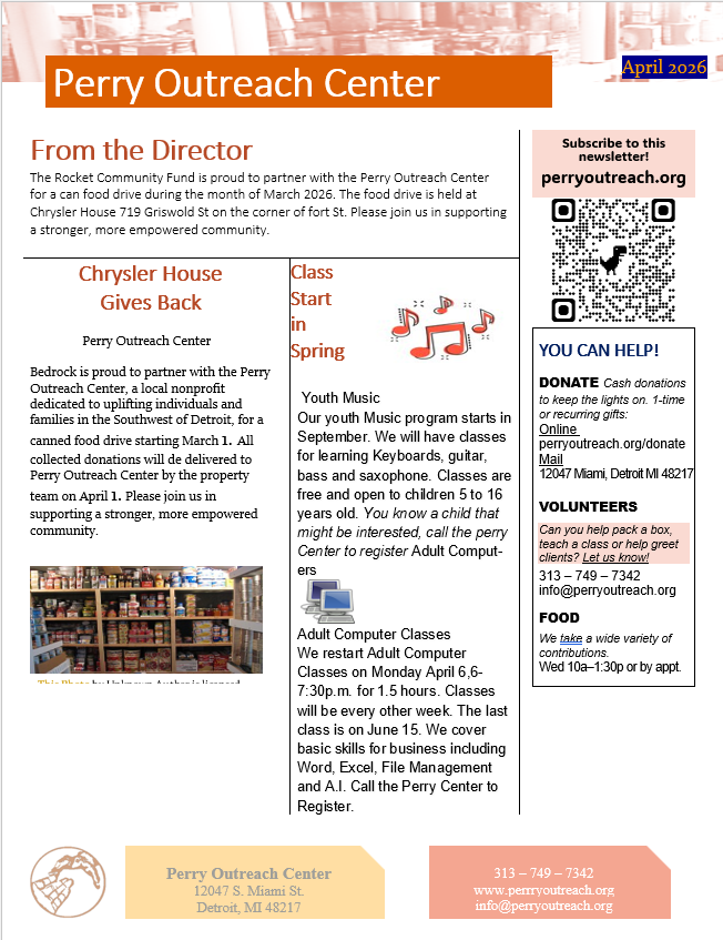 Stay up to date with what is going on with the Perry Outreach Center.